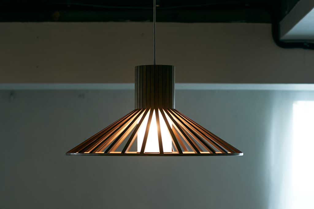 松本のあかり、組木照明器具を現代の生活に合わせてデザインした、森の木漏れ日をイメージしたランプ。