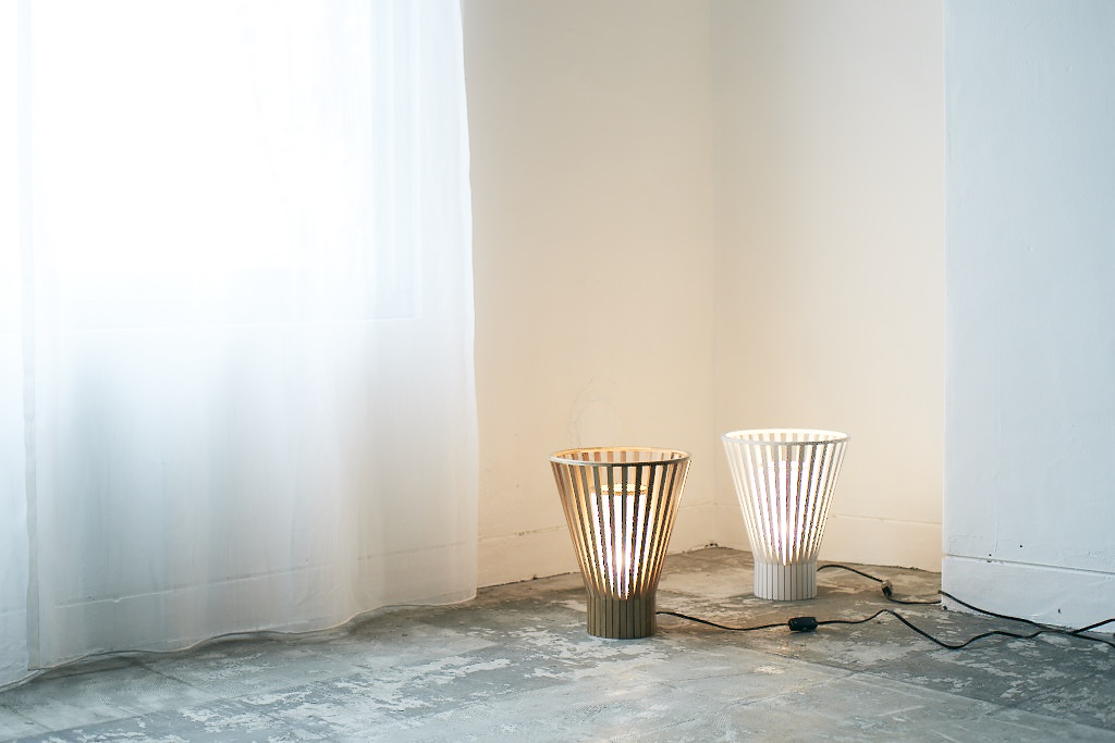 松本のあかり、組木照明器具を現代の生活に合わせてデザインした、森の木漏れ日をイメージしたランプ。